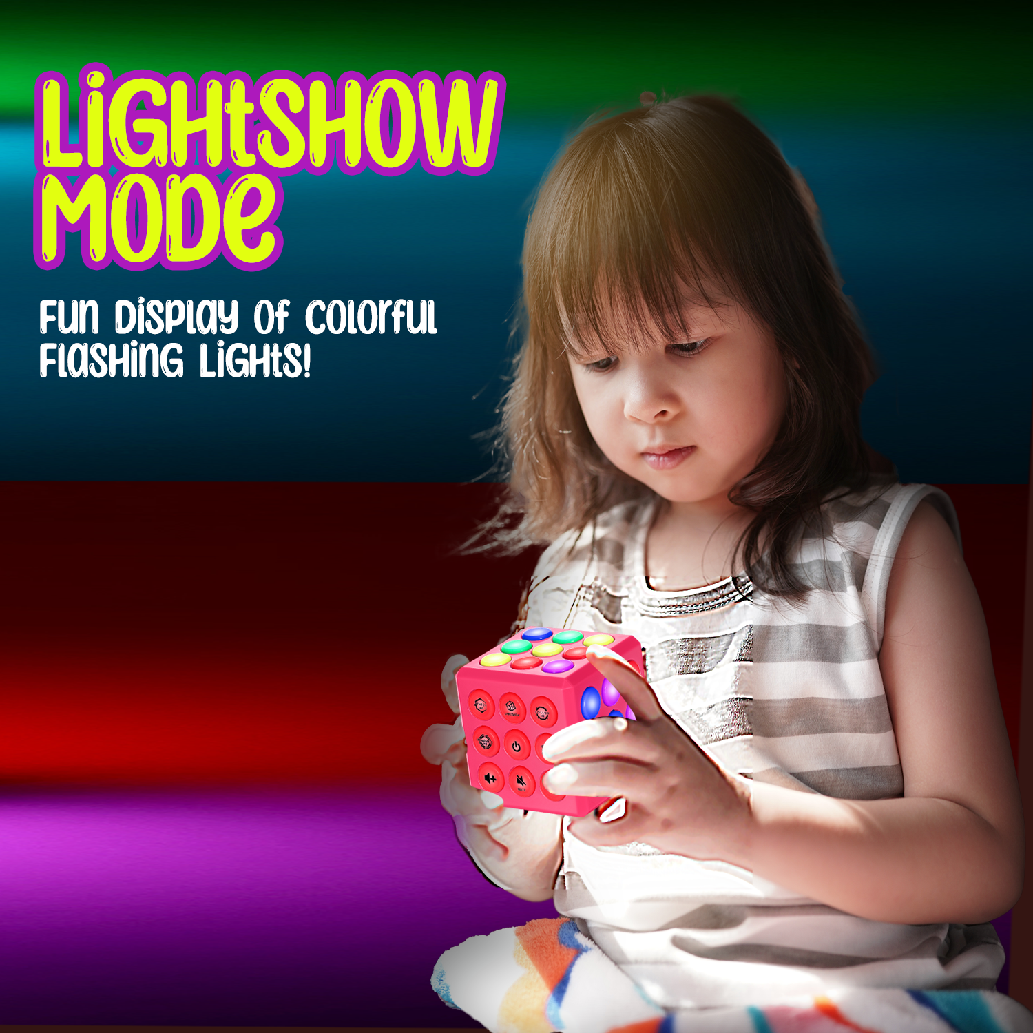 - RELAXING LIGHTSHOW MODE - If you want to take a break or are done playing, you can press the "Lightshow" button for an amazing light show. The cube has adjustable volume or can be completely muted. Requires 3 AAA batteries (not included).