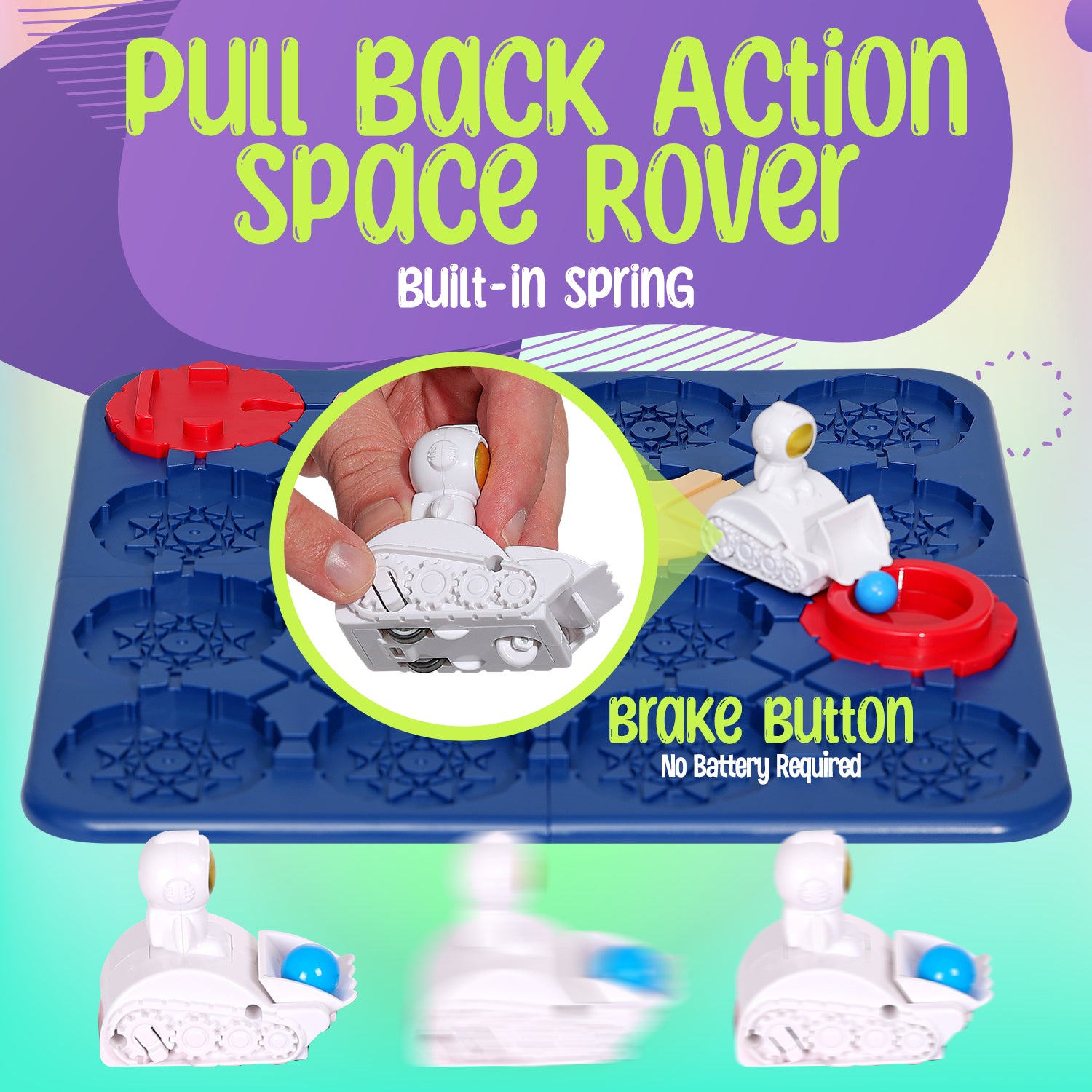 - HOW THE GAME WORKS: This is a fusion of puzzles, a maze, and building blocks. Simply connect the blocks to create a track for the space rover to reach the endpoint. Pull back the car and let it run on the tracks, no batteries required!